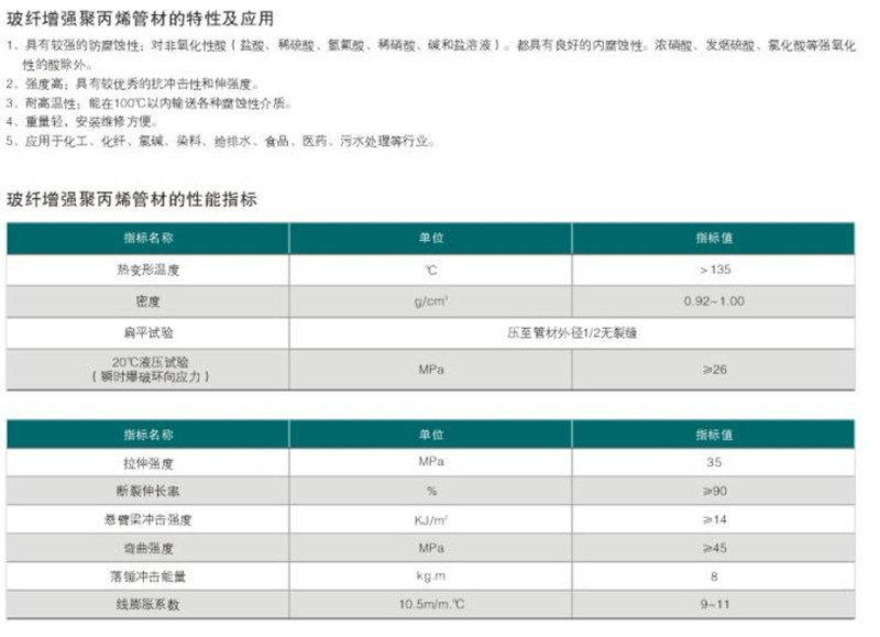 FRPP管的制造工藝及技術(shù):FRPP管管采用無規(guī)共聚聚丙烯作為原料,過去產(chǎn)品原料只能通過進(jìn)口,國(guó)內(nèi)尚無生產(chǎn)能力,所以FRPP管道一直存在著質(zhì)優(yōu)價(jià)高的問題。FRPP管材是采用帶有混煉段的FRPP管專用螺桿和FRPP管專用擠出模頭的單螺桿擠出機(jī),經(jīng)擠出成型工藝生產(chǎn)的管材;FRPP管件是采用與FRPP管材相同牌號(hào)的專用料,經(jīng)注塑成型工藝生產(chǎn)。FRPP管除具有普通塑料管的無銹蝕性、不結(jié)垢、流阻小,加工能耗低等特殊性外,還具有使用壽命長(zhǎng),低溫抗沖擊性能好,耐高溫和良好的熱熔焊接性能。其技術(shù)性能特點(diǎn)如下:(1)重量輕(僅為金屬管的1/8)施工強(qiáng)度低、搬運(yùn)方便。(2}采用熱熔連接:管材、管件同質(zhì)熔化為同一整體,使用壽命長(zhǎng),安全可靠,永不滲漏。(3)保溫節(jié)能:FRPP管導(dǎo)熱系數(shù)為0.21W(m.K),僅為鋼管導(dǎo)熱系數(shù)的1/200,用于熱水管道保溫節(jié)能效果明顯。